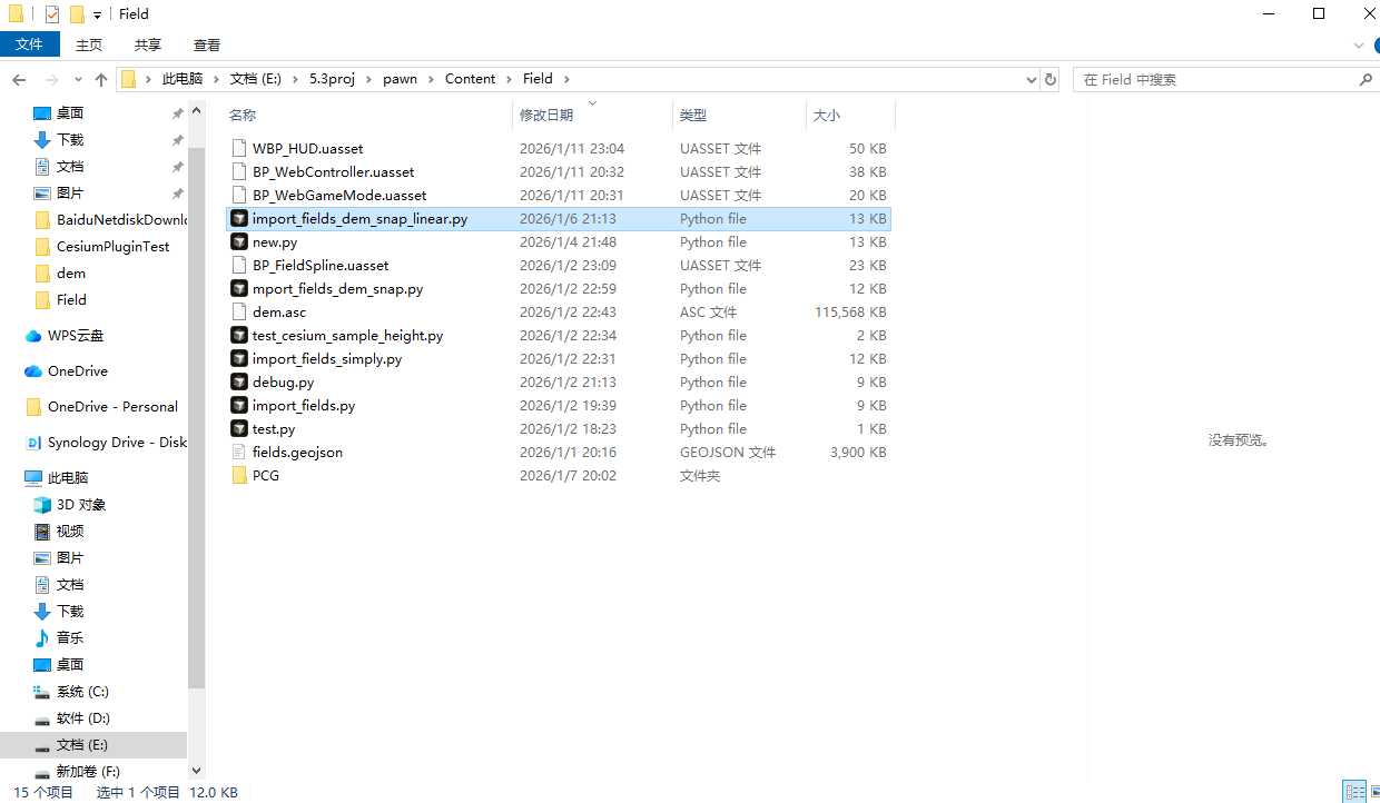运行后你会在 Outliner 里看到很多 Field_000xxx Actor,每个都是一个闭合样条田块,并且都带了 Tag:FIELD。
